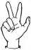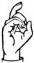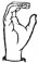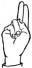 На ћирилици написано МИНА ОБУЋИНСКИ састоји се из 13 слова [?]. Исписано ћириличном једноручном азбуком за глувонеме: