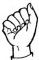 На ћирилици написано МИНА ОБУЋИНСКИ састоји се из 13 слова [?]. Исписано ћириличном једноручном азбуком за глувонеме: